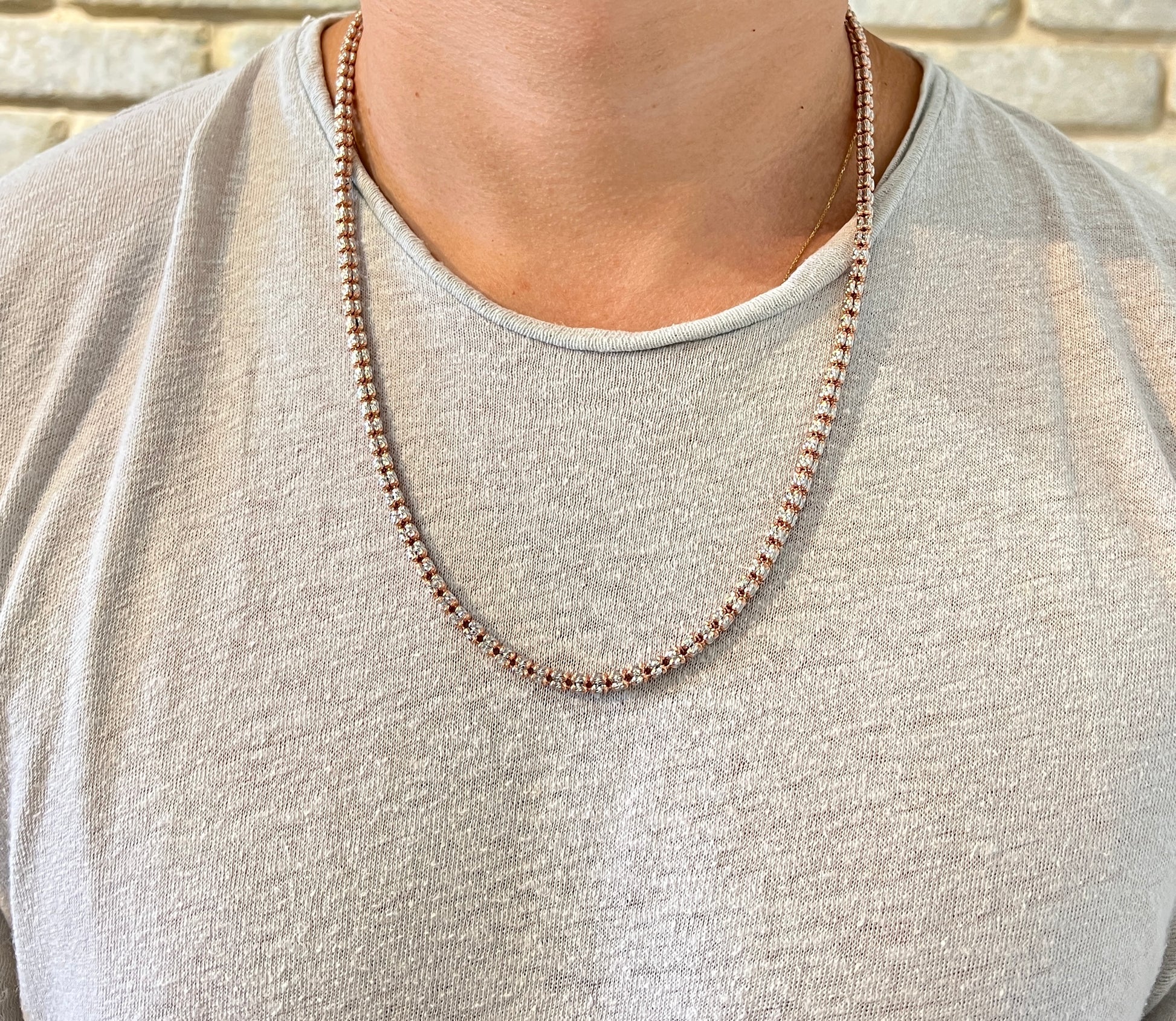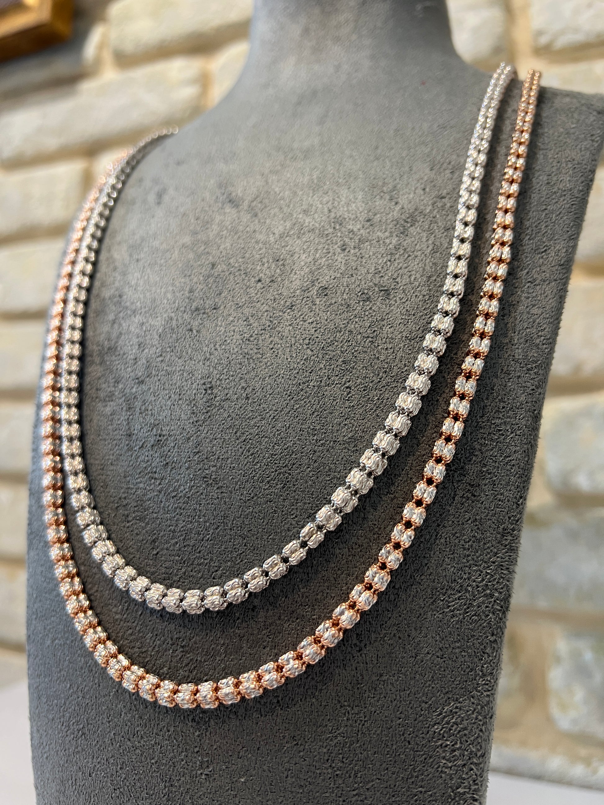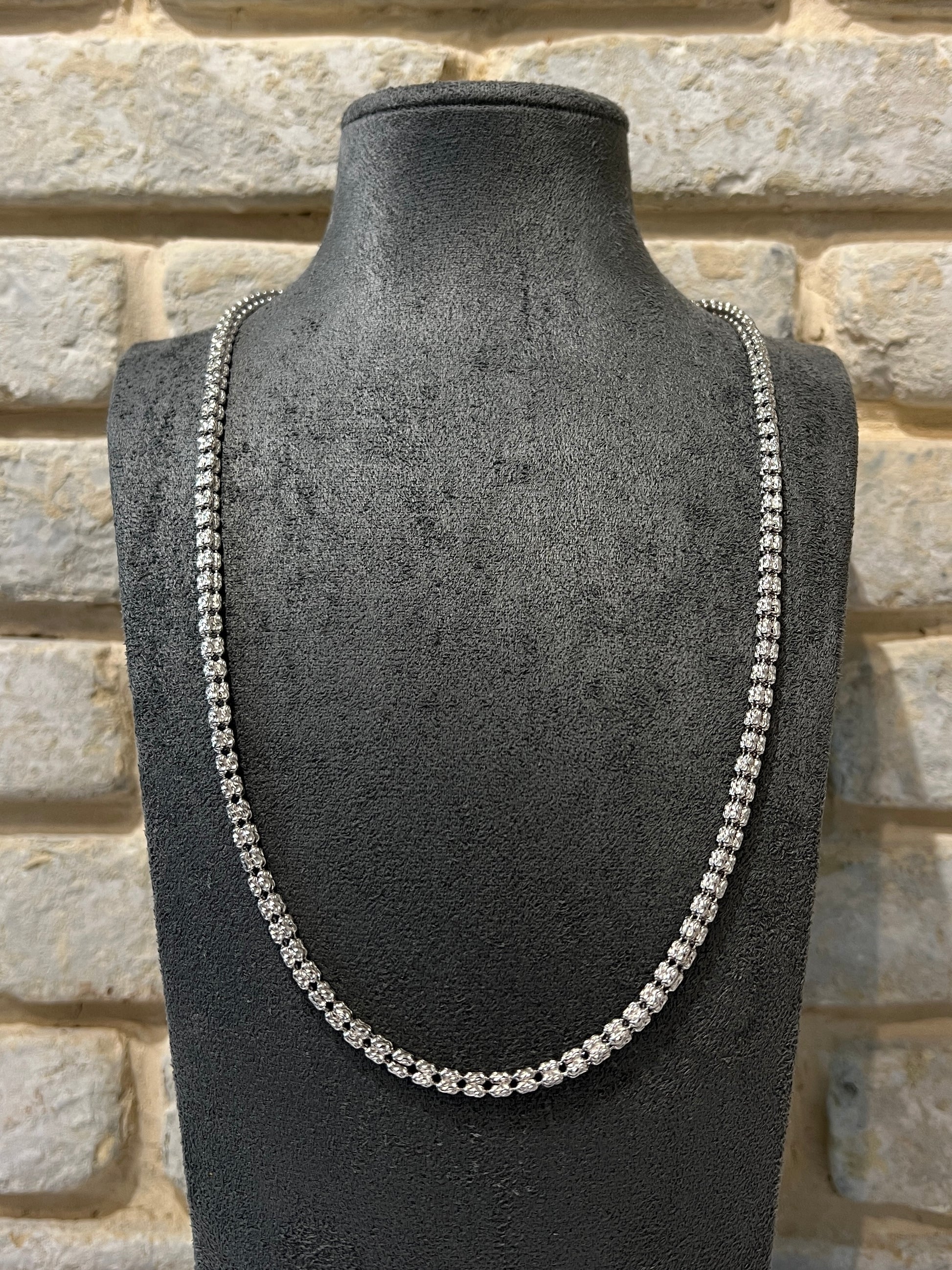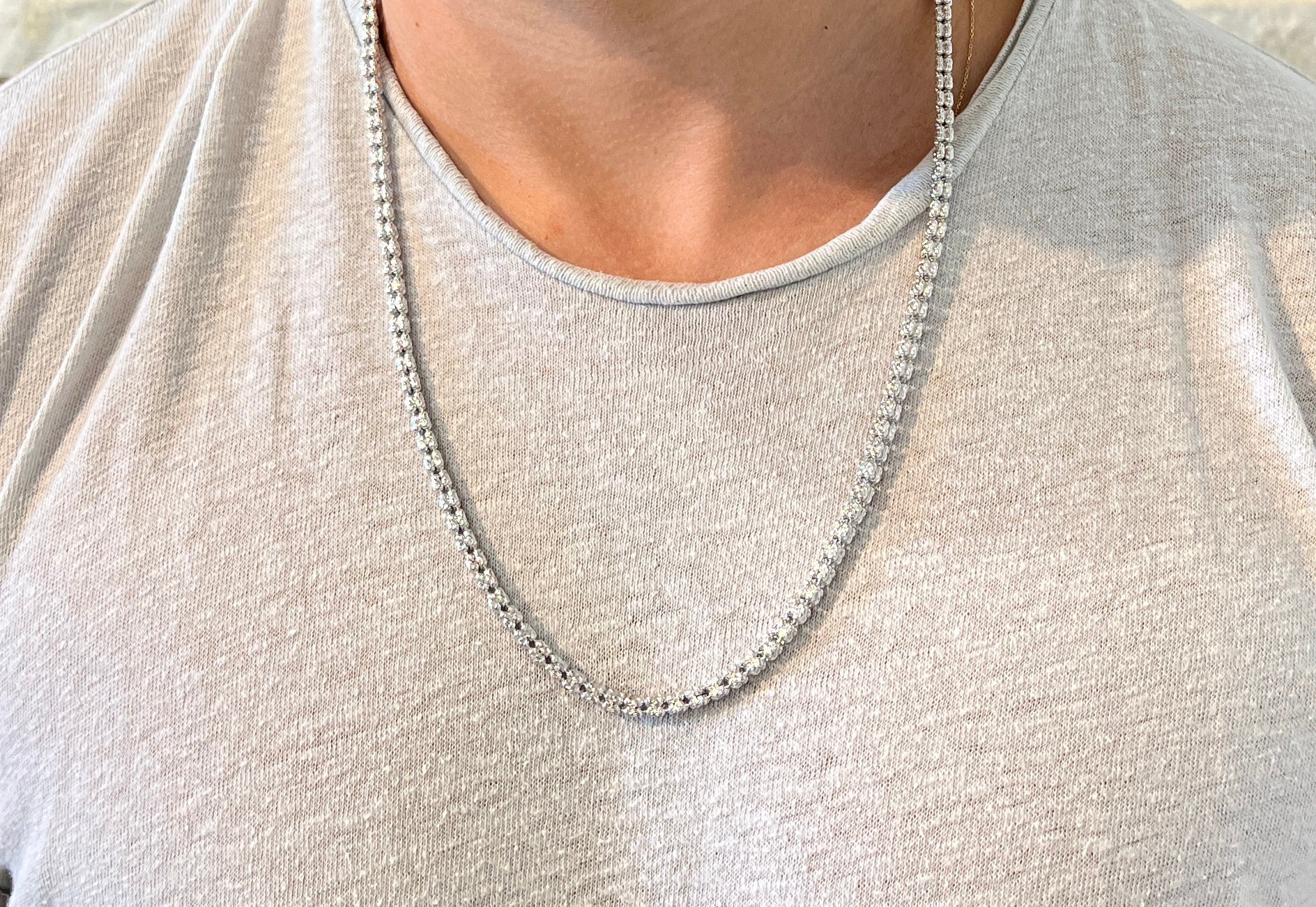 שרשרת אייס עוצמתית עשויה כסף 925 איכותי, עם חיתוכי לייזר מדויקים היוצרים מראה מנצנץ ובולט מכל זווית. העיצוב הגברי מעניק נוכחות חזקה וסטייל יוקרתי, כזה שלא נשאר אדיש. מתאימה לענידה יומיומית וגם ללוק ערב מרשים, למי שמחפש שרשרת עם אופי, עומק ונוכחות אמיתית