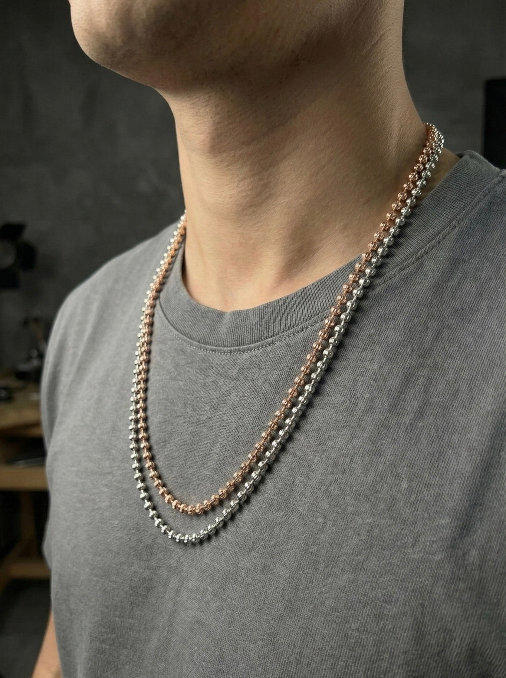 שרשרת כדורים יוקרתית עשויה כסף סטרלינג 925 בגימור איטלקי עם חריטות לייזר לנצנוץ בוהק